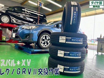 XVのタイヤ交換作業ご依頼をお受けしました☆彡 タイヤはご説明などさせて頂きましてレグノGRVⅡを交換になりました♪ サイズは225/60R17になります! タイヤは新車から装着されていましたタイヤなので劣化がかなり進行していました! セパレーションやバーストの原因になりかねないので...