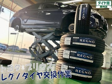 プリウスのタイヤ交換作業を行いました☆彡 タイヤはレグノGR-XⅡ 195/65R15 4本交換になります♪ よく出るタイヤサイズでしたので在庫中にモデルが変わりアウトレットという形でお買い得価格にてご提案致しましたら是非とのことでしたので交換作業を早速行わせていただきました☆ 私の母親...