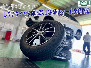 フィットにタイヤ・ホイールセット品の取り付けを行いました☆彡 タイヤはレグノGR-XⅡ 175/70R14、ホイールはMONZA JAPAN JPスタイル ヴォーゲル 14x5.5 4/100 +50の組み合わせになります♪ 取付は当店お馴染みのセンターフィットでしっかりと取付を行いました☆ 高級車だけでな...