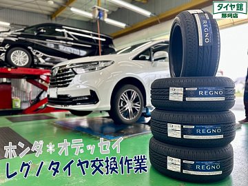 オデッセイのタイヤ交換作業を行いました☆彡 交換しましたタイヤはブリヂストン最高峰のレグノGRVⅡ ミニバン専用タイヤになります♪ サイズは225/50R18と多く目のサイズです! ハッチバック車は車内空間が広く、特にリアタイヤの上に位置しているサードシート(後席)でのノイズが大きく...