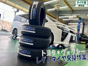 パンクでご来店下さいましたヴォクシーのタイヤ交換作業になります☆彡 残り3本のタイヤも点検し交換時期でしたのでブリヂストンミニバンタイヤ最上級モデルレグノGRVⅡ 205/60R16 4本交換をオススメさせて頂きました♪ 室内空間の広いミニバンはロードノイズ音がどうしても室内に響きや...