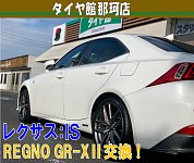 レクサスISのタイヤ交換です☆彡 タイヤはポテンザとレグノで悩んでいましたが、 今回はレグノをご選択下さいました♪ タイヤサイズは 『フロント225/40R18、リア255/35R18』 と標準で前後で違いになります! 性能はブリヂストン最高峰のタイヤとなります⭐︎ デザイン性も優れていますので高級感があ...