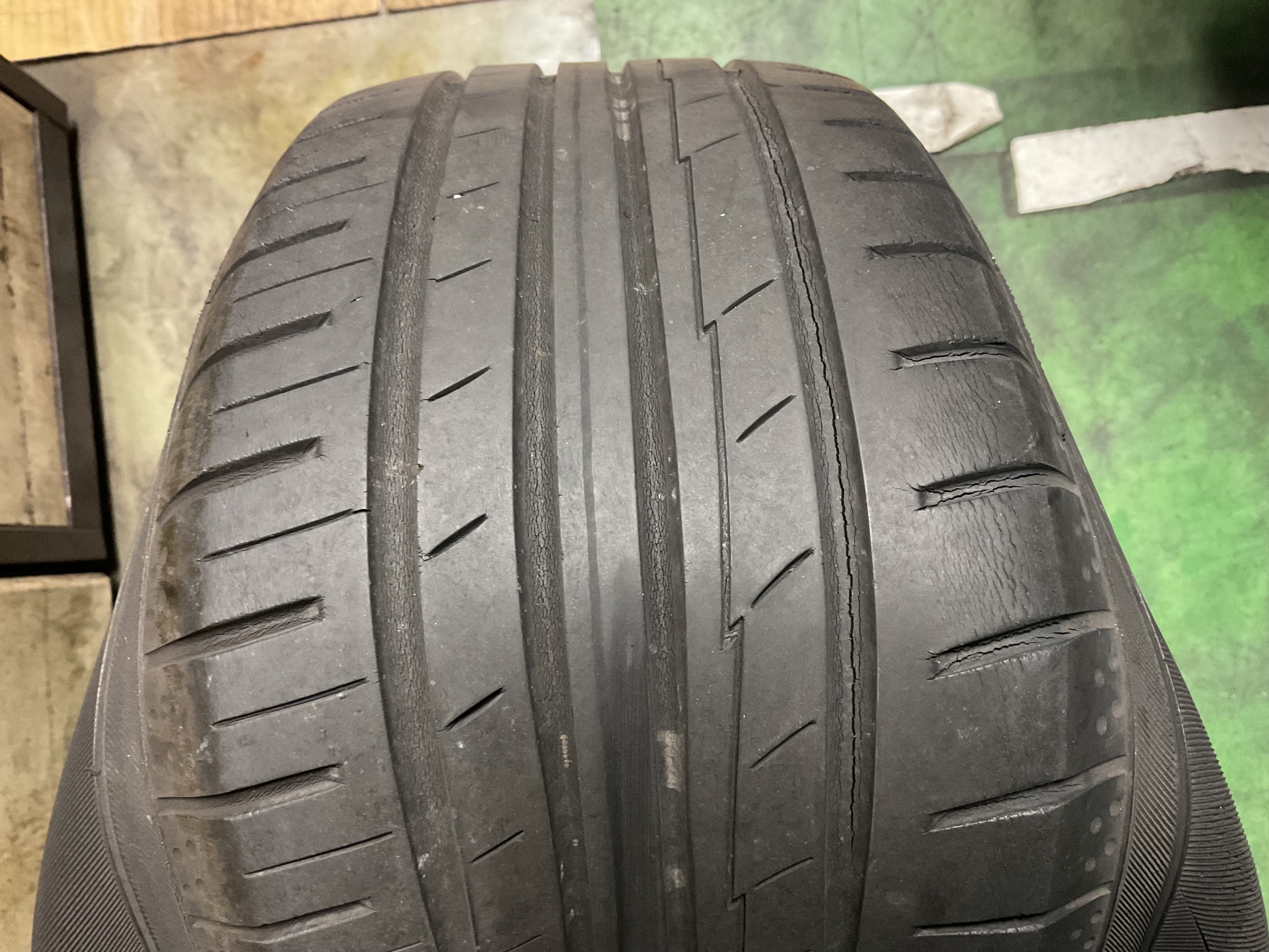 本日は マツダ デミオのタイヤをひび割れや側面の傷の状態をお客様に