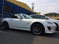 増税まであと1ヶ月というところで、2月の終わりにご来店してくださいました。 ホイールといえば超有名メーカーのBBS!!! 鍛造で軽量! 仕上げも綺麗! しかし高額。 でもやっぱり、取り付けしたい!! と、感じるホイールです。 今回は、RFのDBKの17インチとポテンザS001の組み合わせで取付です。 こ...