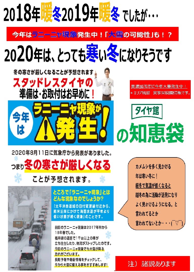 いよいよ冬シーズン到来で、タイヤ館中津川もお陰様で