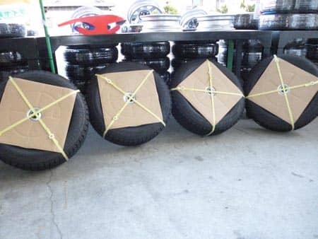 当店のタイヤクロークは丁寧に梱包して、専用の倉庫で責任を持ってお預かりいたしますのでご安心ください。