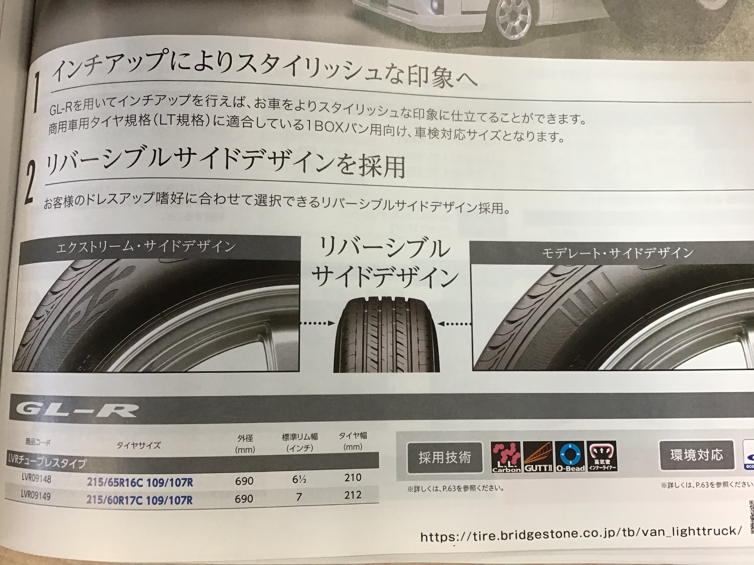 ドレスアップバンタイヤ! ポスト 2021年2月20日 こんにちは!いつもお世話になっております。 タイヤ館中津川です! 本日のご紹介は1boxバン用向け、車検対応サイズです! GLーR(ジーエル アール) 215/65r16c 109/107r 215/60r17c 109/107r のラインナップとなります。 リバーシブルデザイン何ので見た目を選ぶことができます! エクストリーム・サイドデザイン こんな感じになります! カテゴリ:その他 担当:伊野