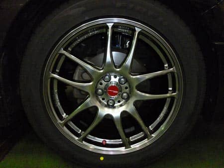 このホイールの色、カタログで見るより高級感があり、お客様に選んで頂いたオプションのセンターキャップとエアバルブの赤色がさらにいい感じです☆