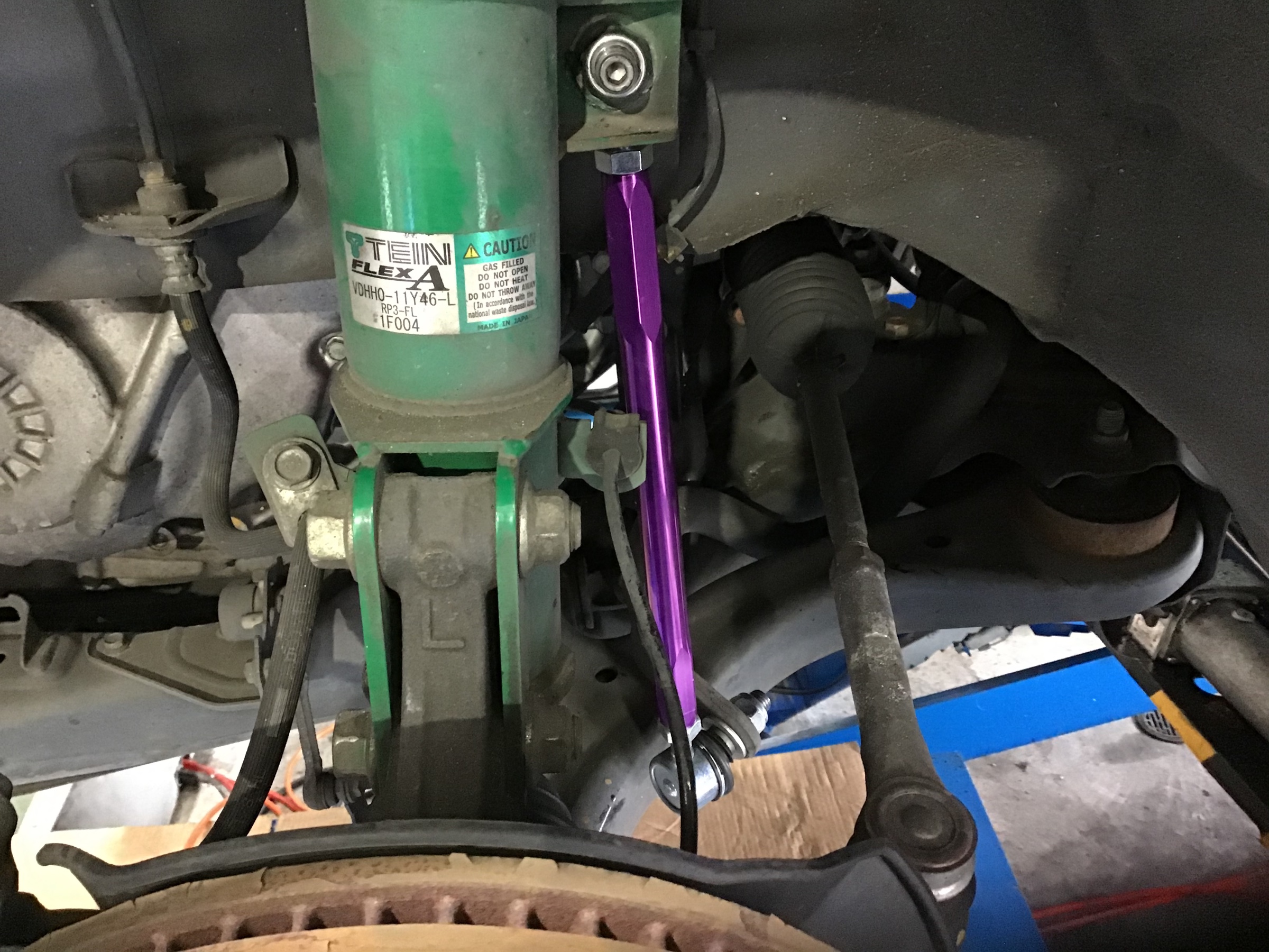 それをスタビライザーリンクで純正車高の位置に戻して乗り心地とコーナリング性能回復を目的にしています。