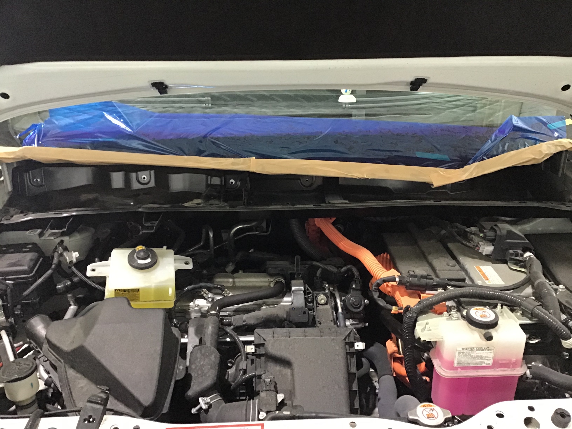 前側はワイパー類を外しガラスに保護テープを貼ります。