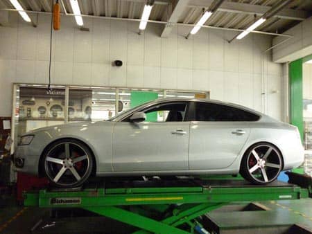 アウディA5足回り交換後の仕上げ作業、4輪アライメント調整です。