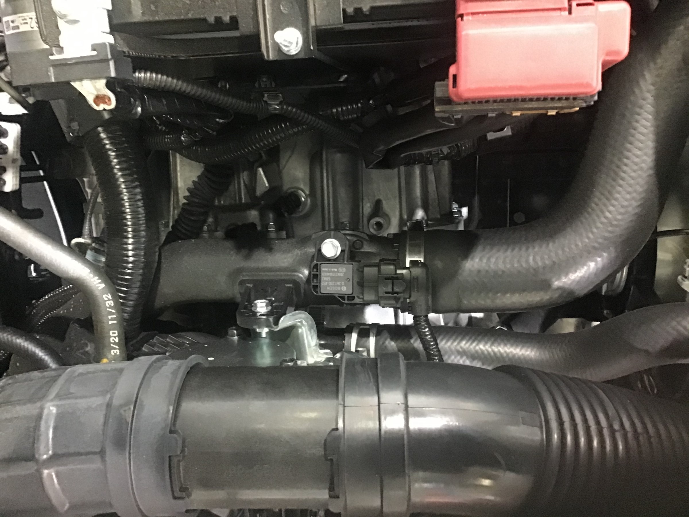 サブの圧力センサーがバッテリーとエンジンの間にあります。