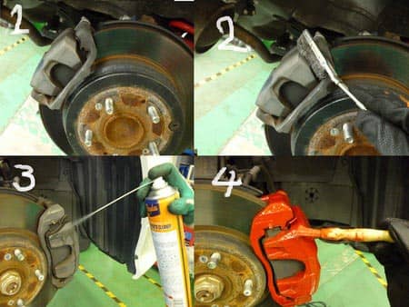2. キャリパーについてる汚れをブラシでゴシゴシ落とします。