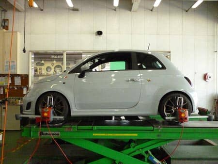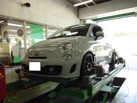 先日、車高調&タイヤホイールセット取りつけさせていただいたアバルト500の仕上げ作業のアライメントをとらせていただきました。