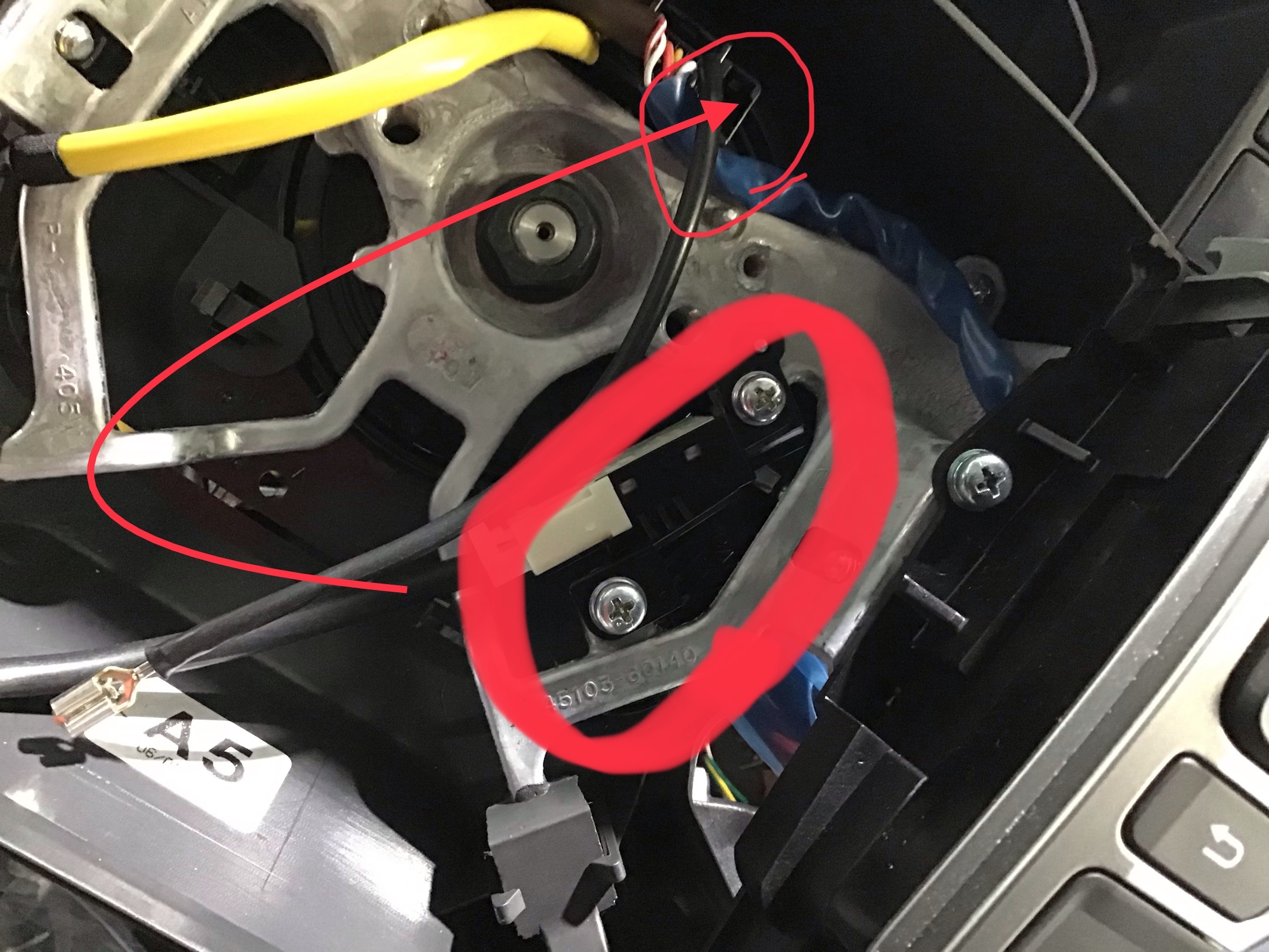 ブレーキペダル上の配線に取り付けます!