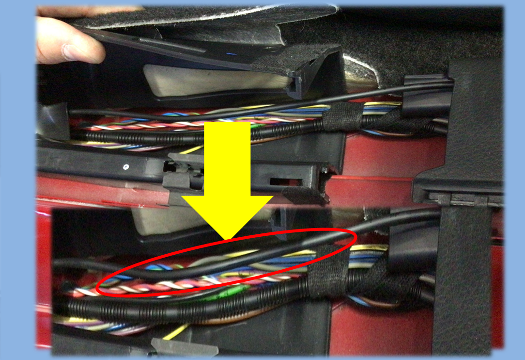 リアカメラの配線を取り回します。
