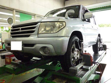 パジェロイオのタイヤ交換とアライメント調整しました。