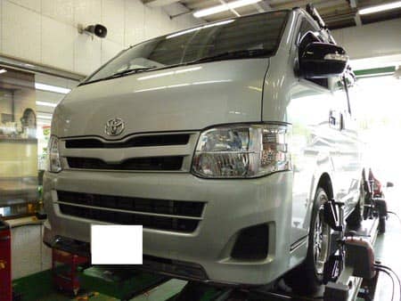 以前、フロントの車高を少しだけかまったハイエースのアライメント調整しました。