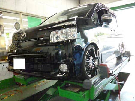 先日車高調へ交換させていただいたVOXYのアライメント作業です。