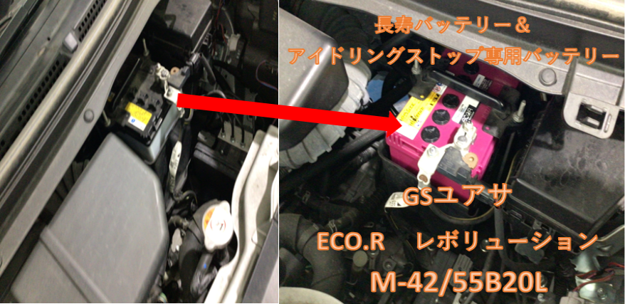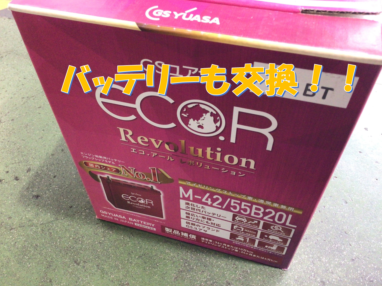 お車を点検させていただきバッテリーが新車付けのバッテリーで弱っていたため