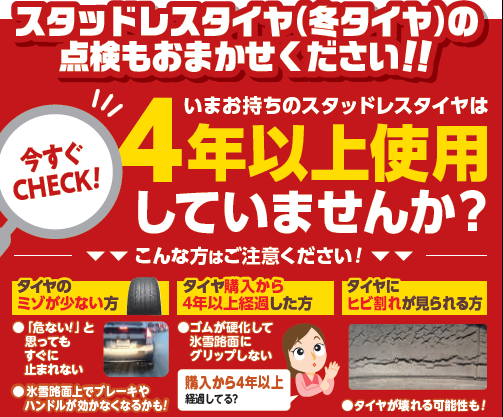 まだまだ冬はこれから!タイヤ在庫一掃セールを開催!! ポスト 2024年1月23日 今年はどうしよう・・・?もう大丈夫かな・・・? とスタッドレスタイヤのご購入を迷われているお客様! ただいまスタッドレスタイヤの在庫一掃売り尽くしセールを開催しております!! 在庫のあるサイズでしたら☆お買得チャンス☆ ご自宅でタイヤ交換されたお客様も、増し締めや空気圧点検・タイヤ点検は無料にて承ります! 毎日の通勤・通学・送り迎えや急な病院など ”いざ!”という時に ☆つけててよかったスタッドレス☆ 冬はまだまだ続きます!万全の備えで安心・安全な冬道ドライブを!! カテゴリ:お知らせ
