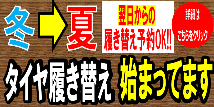 タイヤの履き替え受付中!!作業予約は便利な☆WEB予約☆をご利用くださいっ! ポスト 2025年4月16日 【タイヤ専門店で安心取付♪】 任せて安心♪春のタイヤ交換は当店で! タイヤ専門店が安心安全にお取り付けいたします☆ ◎WEBからも予約が可能です◎ ↓ タイヤの履き替え☆WEB予約☆ お電話でもご予約を受け付けておりますので お気軽にお問い合わせください^^ 関連情報もあわせてご覧ください 夏タイヤへの履き替え☆WEB予約☆ カテゴリ:お知らせ
