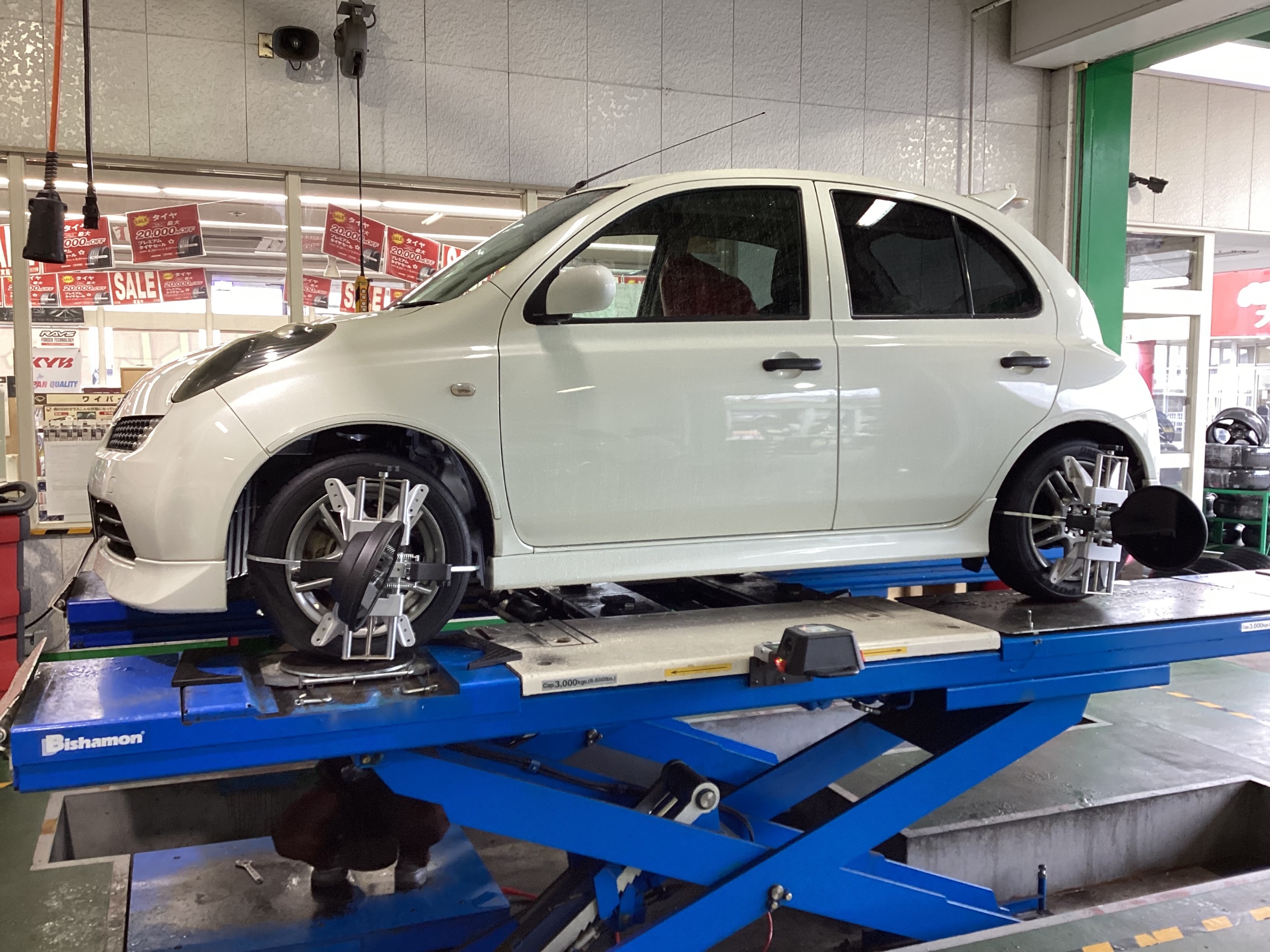 タイヤ交換後アライメント調整作業も