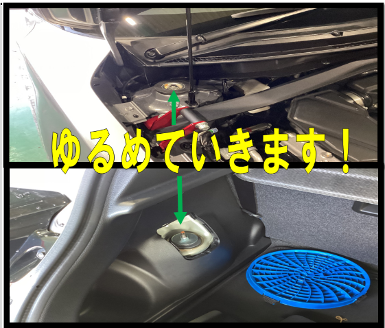 フロント・リアのアッパーを緩めます。