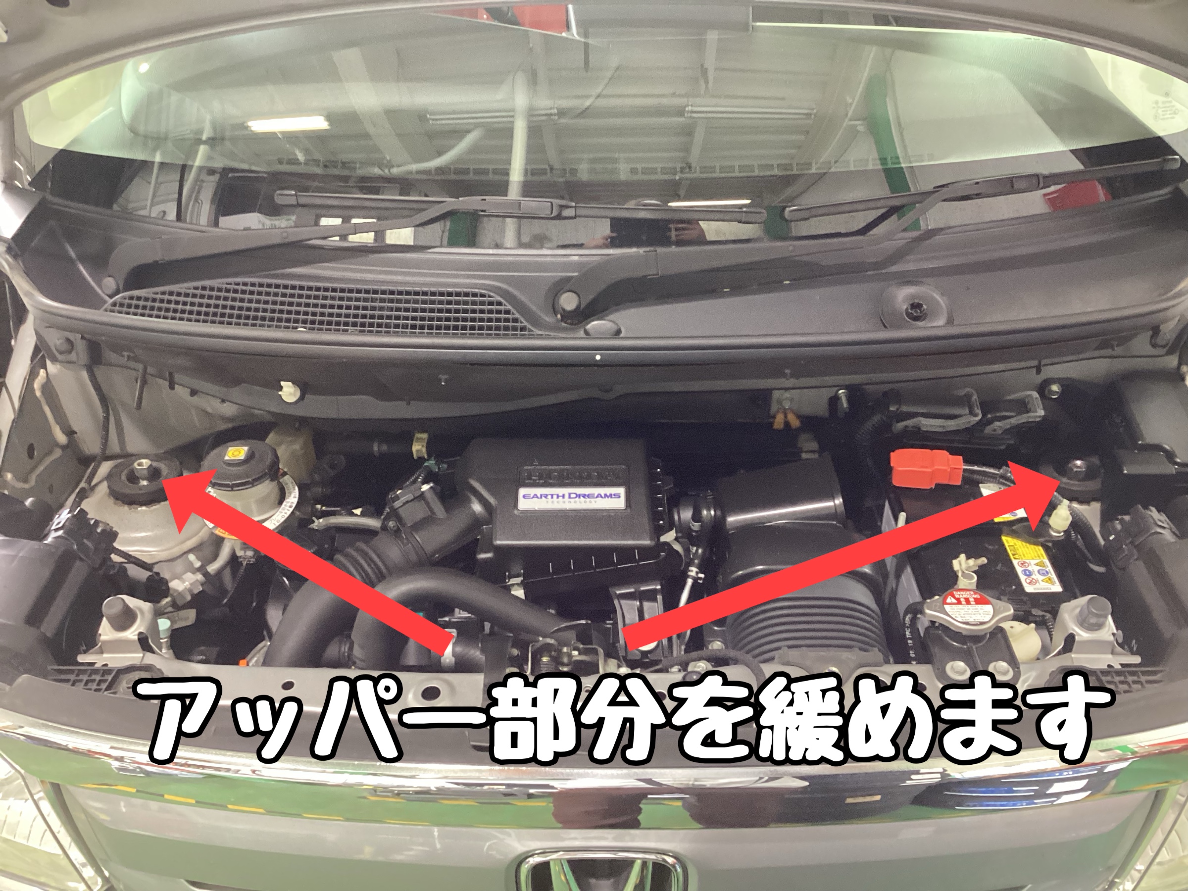 フロントのアッパーマウントから順に外していきます!
