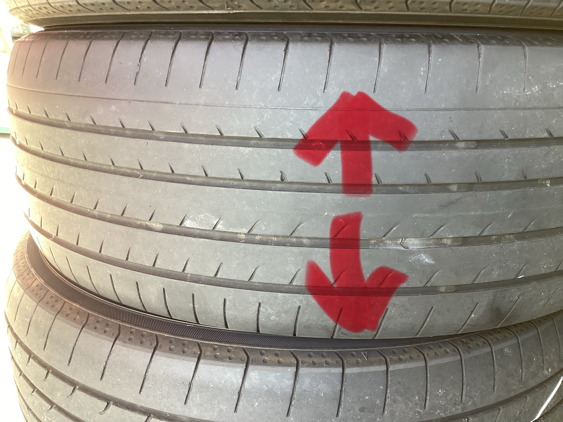 タイヤの点検をさせていただいたところ内側と外側の減り方に差ができてしまっていました
