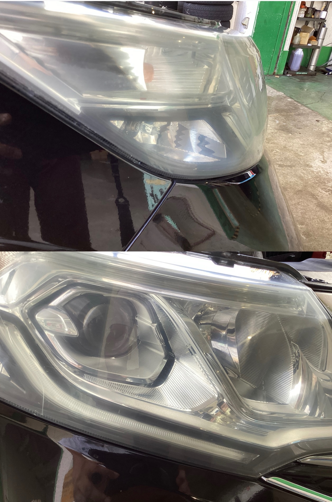 きれいになったヘッドライトを見て