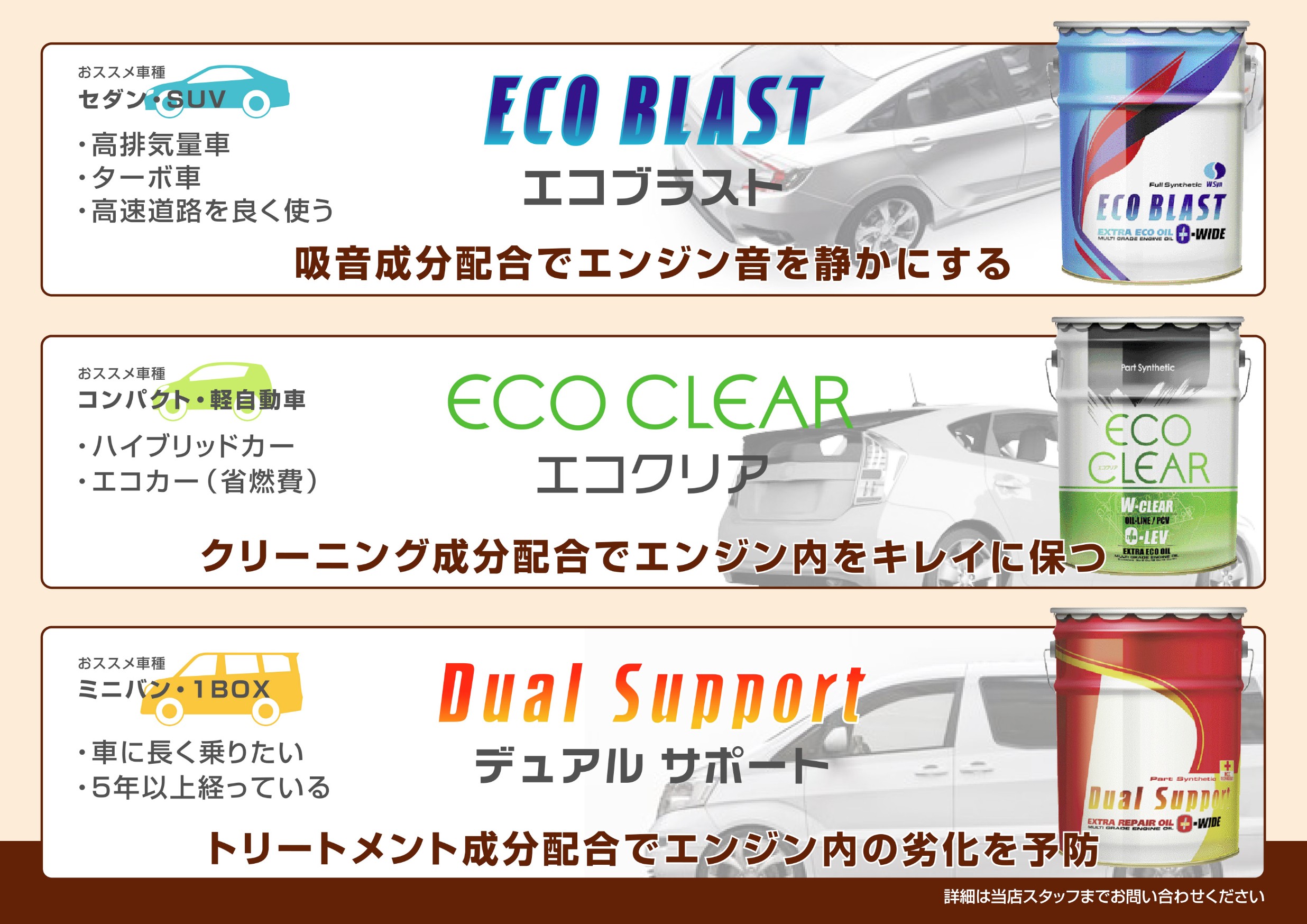 オイルもお車の特性や使い方、ご予算に応じて数種類の中からお選び頂けます♪♪