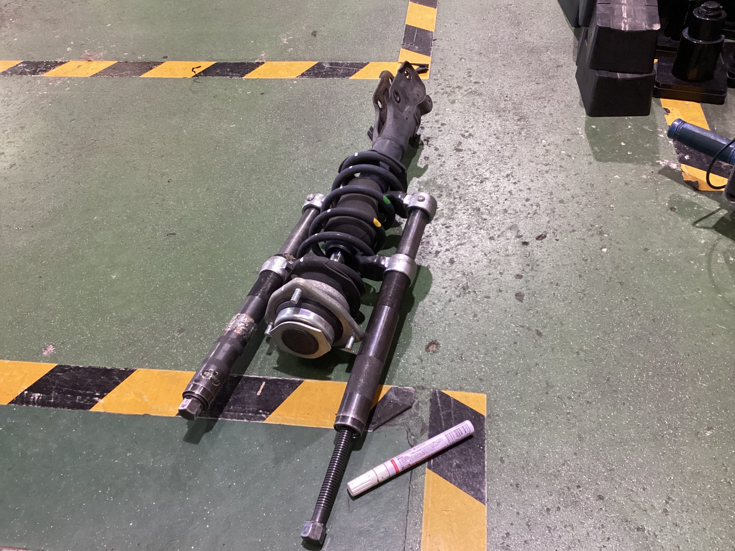 外れたストラットから必要な部品だけ外すので