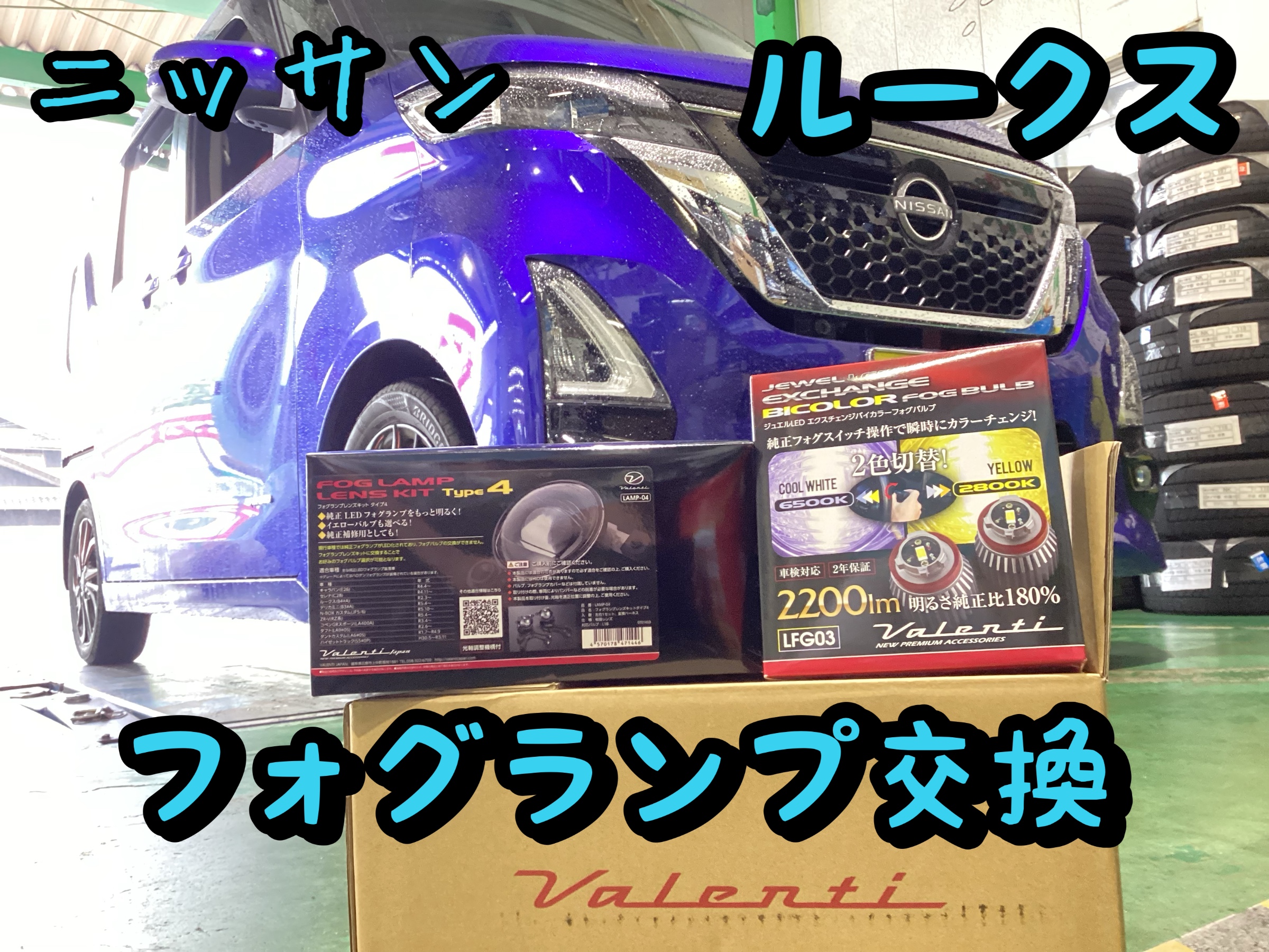 ニッサン ルークス フォグランプ交換 2色切り替えで見やくスタイリッシュに! ヴァレンティ エクスチェンジバイカラー