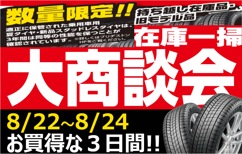 今週末は…☆ スタッドレスタイヤ 商談会開催 8/22~24 ☆