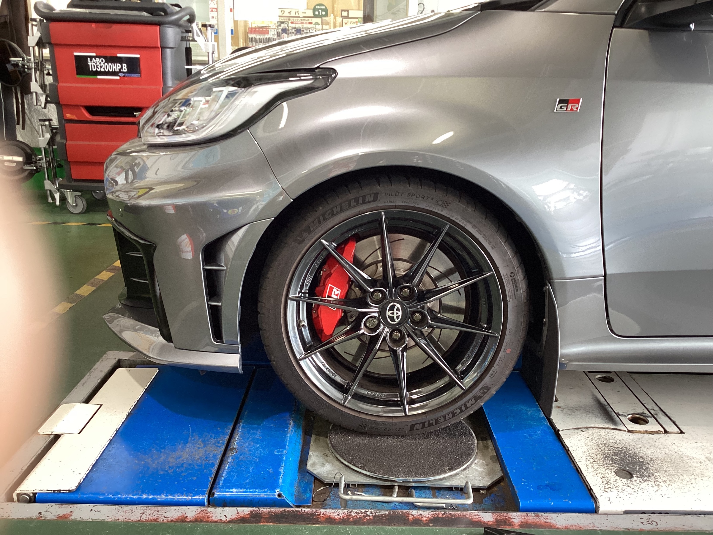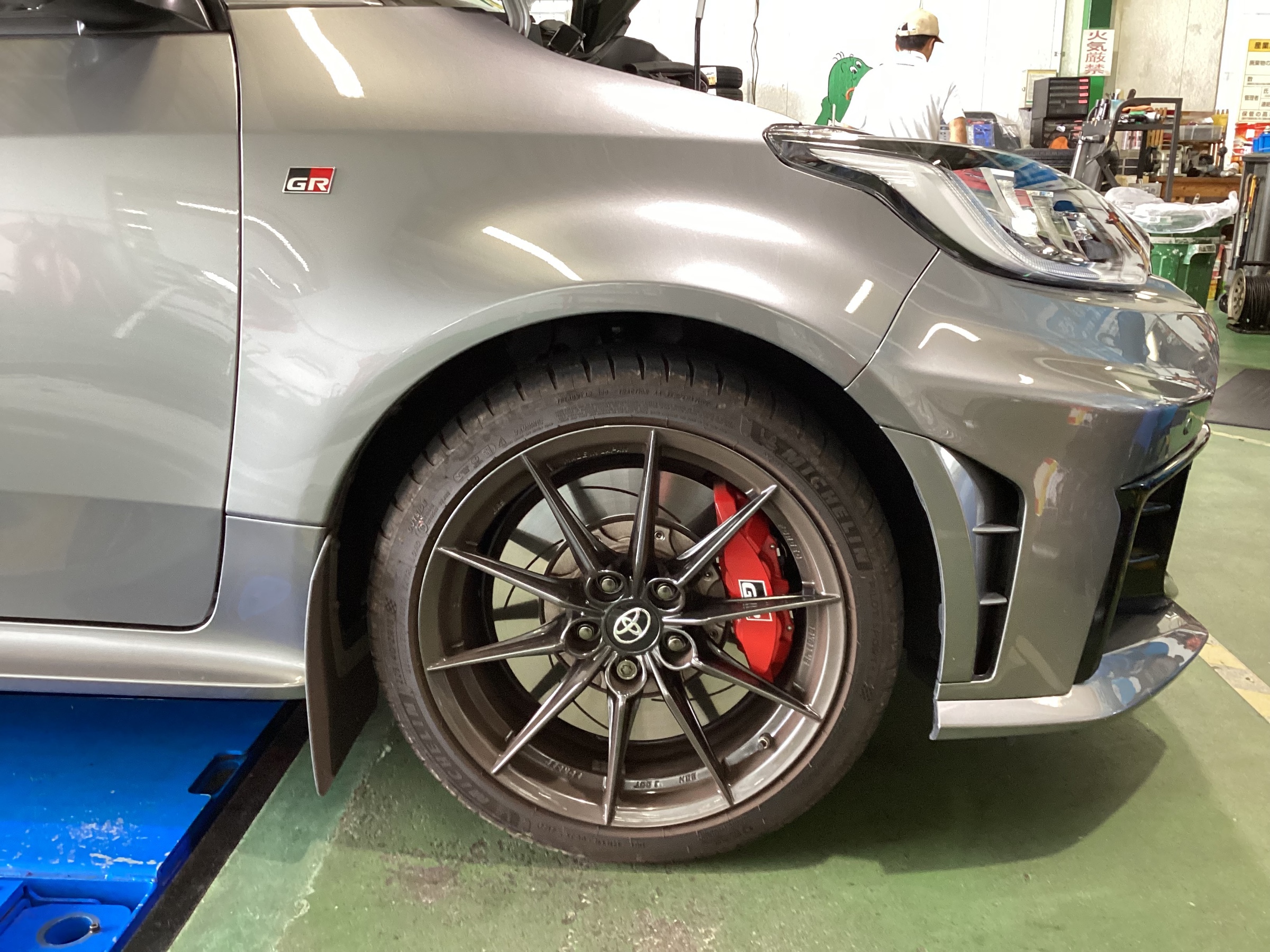 マイナーチェンジ後のGRヤリスはフロントサスペンションのアッパーマウントが仕様変更されています