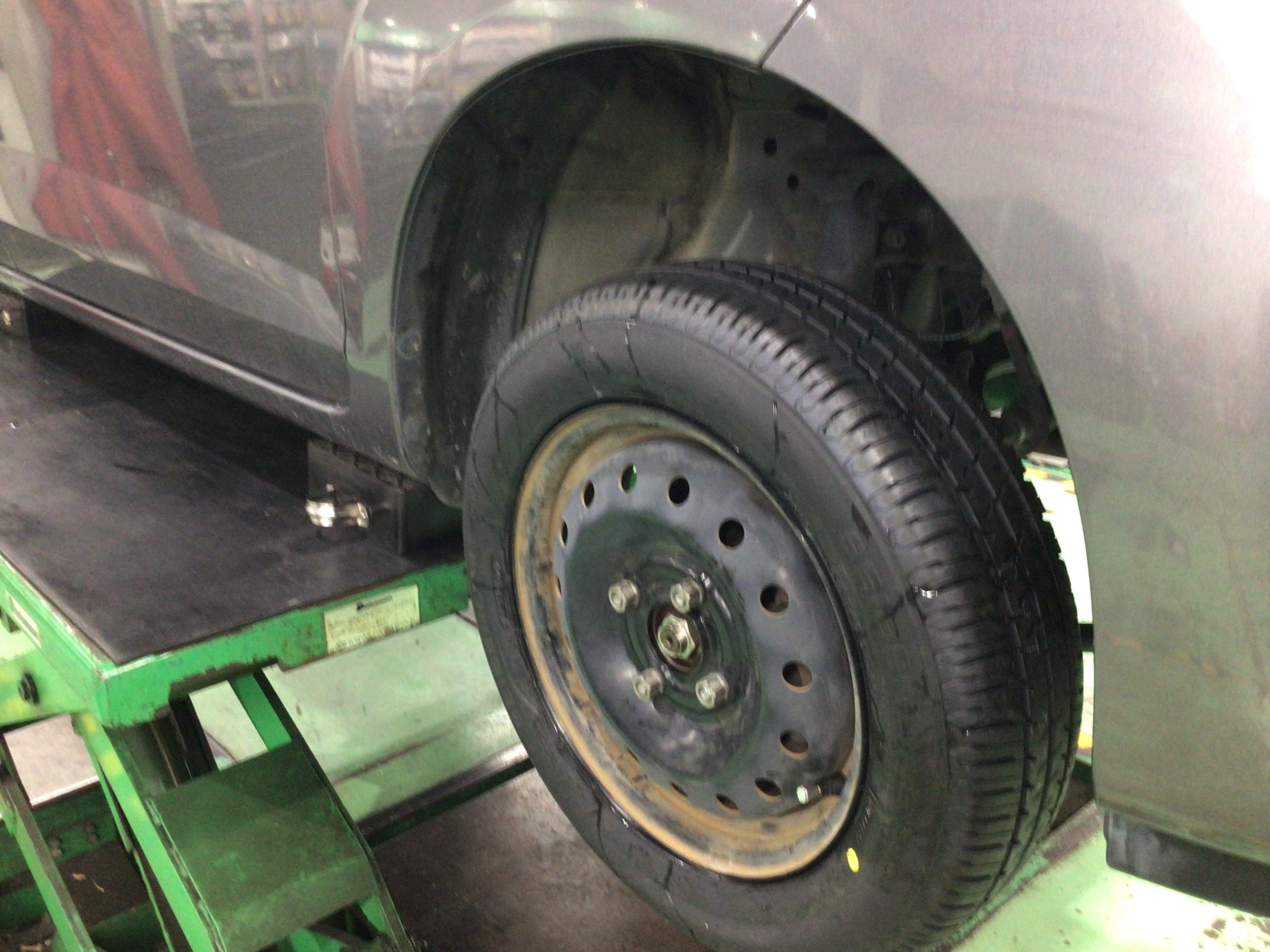 タイヤがこんな減り方をしていたらぜひご相談を。ホンダゼストのタイヤ交換&アライメント調整作業