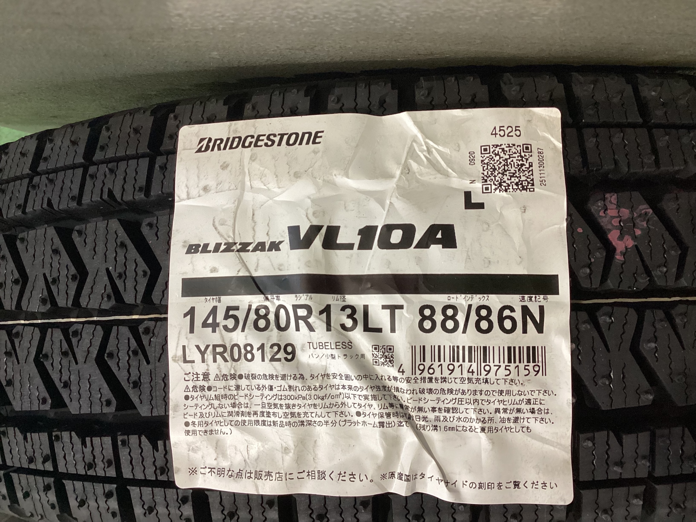 タイヤ銘柄: BLIZZAK VL10A