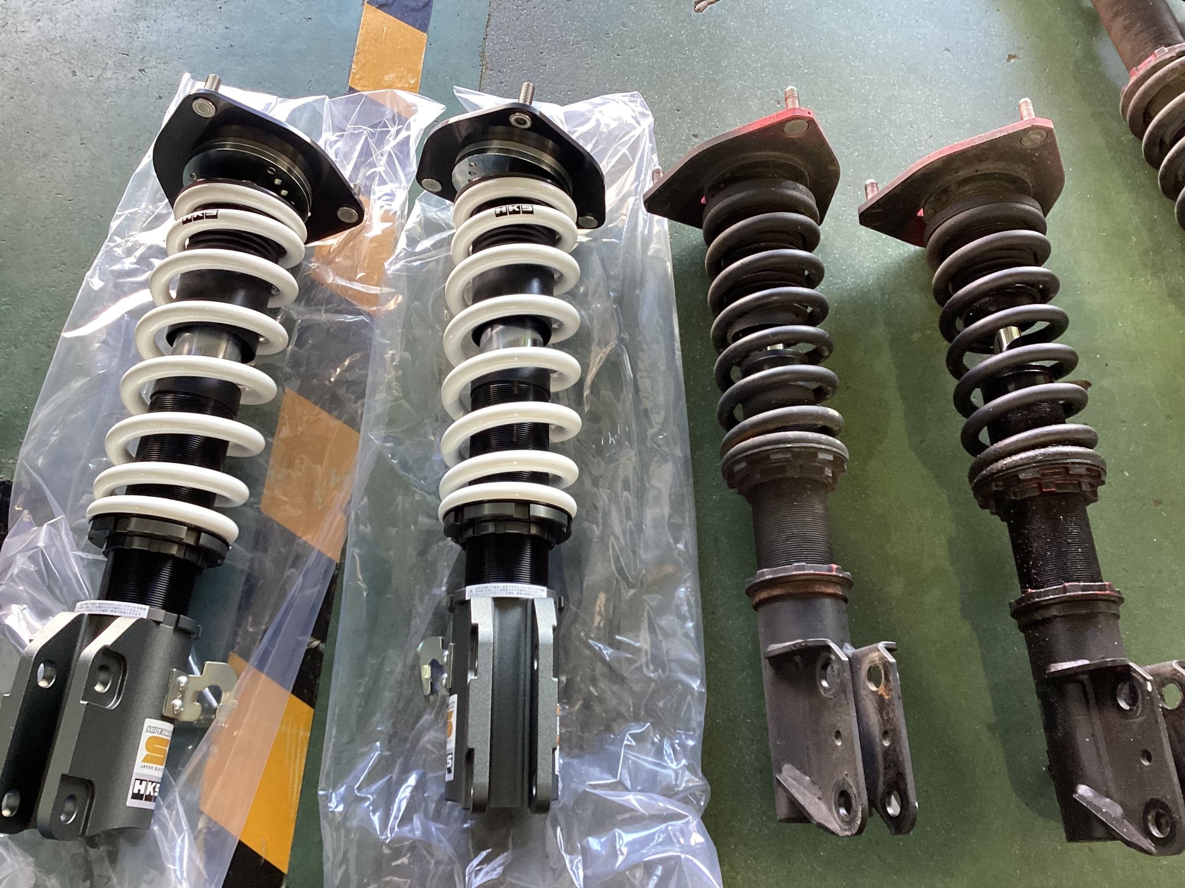 一番右がオイル漏れしてしまった車高調です。