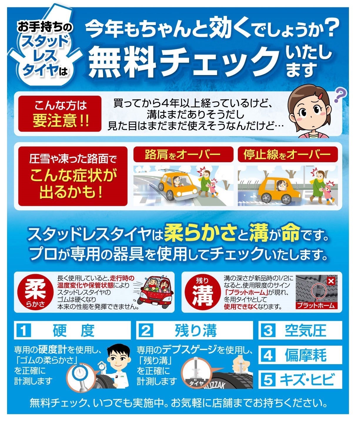 ☆スタッドレスタイヤの点検ポイント3つ☆