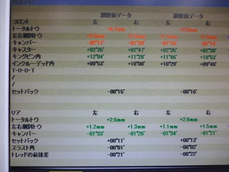 今回のお車は、片減りが酷くタイヤ交換と一緒に調整しました!