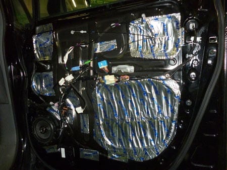 デットニングとは専用の制振材、吸音材といわれるものを取付てドアのビビりや共振を抑え音質をコントロールする作業です(>_<)