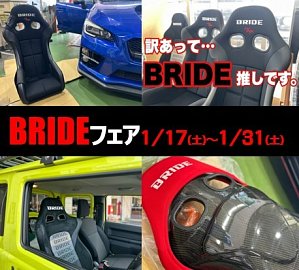 2026年1発目のBRIDEフェア!!スイフト・GRヤリス・WRX・ジムニーなどに人気です!