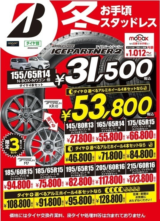 スタッドレスタイヤ・ホイールセットはもちろん、シーズンオフの夏タイヤがお買い得です!