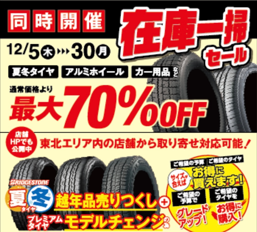 掘り出し物があるかもです! ポスト 2024年12月4日 こんにちはタイヤ館中山です! みなさま、アウトレットという言葉好きではありませんか? 私は大好きです! 何てったって、良いものがお得に買えるチャンスかもしれませんからね!! それはタイヤ・ホイールも同じなんです! タイヤ館では! 越年品のタイヤや、長期在庫のホイールをお得に! 販売いたします!!! しっかりと倉庫で保管されていたタイヤ・ホイールです! 品質に問題はありません! 是非、この機会をお見逃しなく!!!