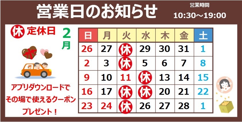 2月営業日のお知らせ