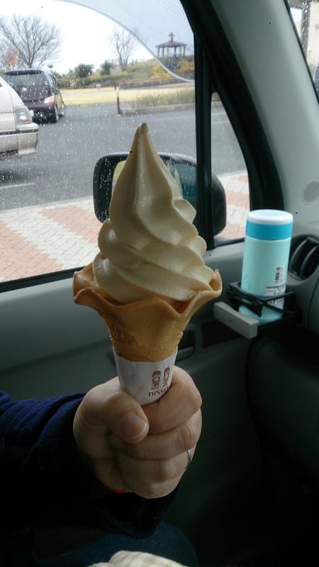 途中の指宿、道の駅でアイスクリーム(びわ味)ご当地アイスだそうです。