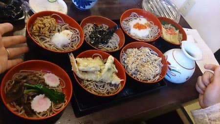 色んなそばが入っている7段割子そば注文しました。