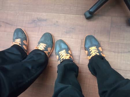 おNEW!!! ポスト 2014年1月9日 見てください!!僕の安全靴が新しくなりました\(^-^)/今まで使っていた安全靴は4年間履いていてボロボロになっていたのでいとうてんちょがサプライズプレゼントしてくれました。店長とおソロなんです”笑ついでに北川さんも一緒の安全靴履いてます!!3人おソロいの靴でみなさんをお出迎えします”笑いとうてんちょありがとうございます。新しい靴を履いて仕事に励みます!!ちなみに写真の左がいとうてんちょで右が僕です。 担当:清久