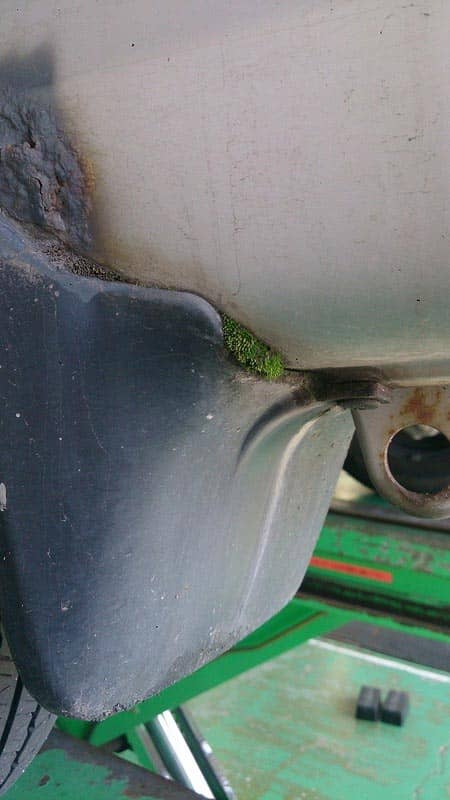 なんと泥除けのところに立派なコケが植わってました。